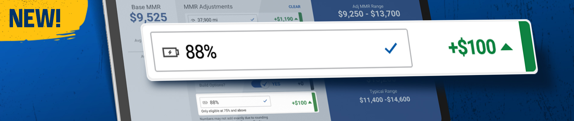 As the adoption of electric vehicles continues to surge, it’s our mission to help you buy and sell them more efficiently and profitably. That’s why MMR now includes an EV battery health toggle!
