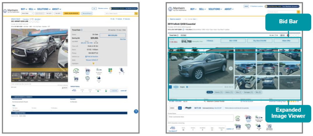 These updates bring images, bidding tools, and checkout closer together, creating a more connected experience that supports faster, more confident buying decisions across Manheim.