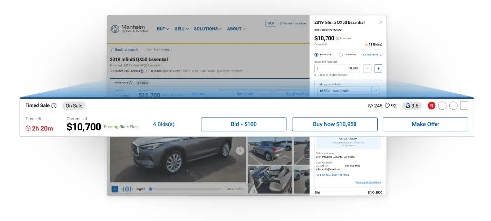 - Bidding and buying actions – tools that allow you to place bids or complete a purchase directly from the vehicle page